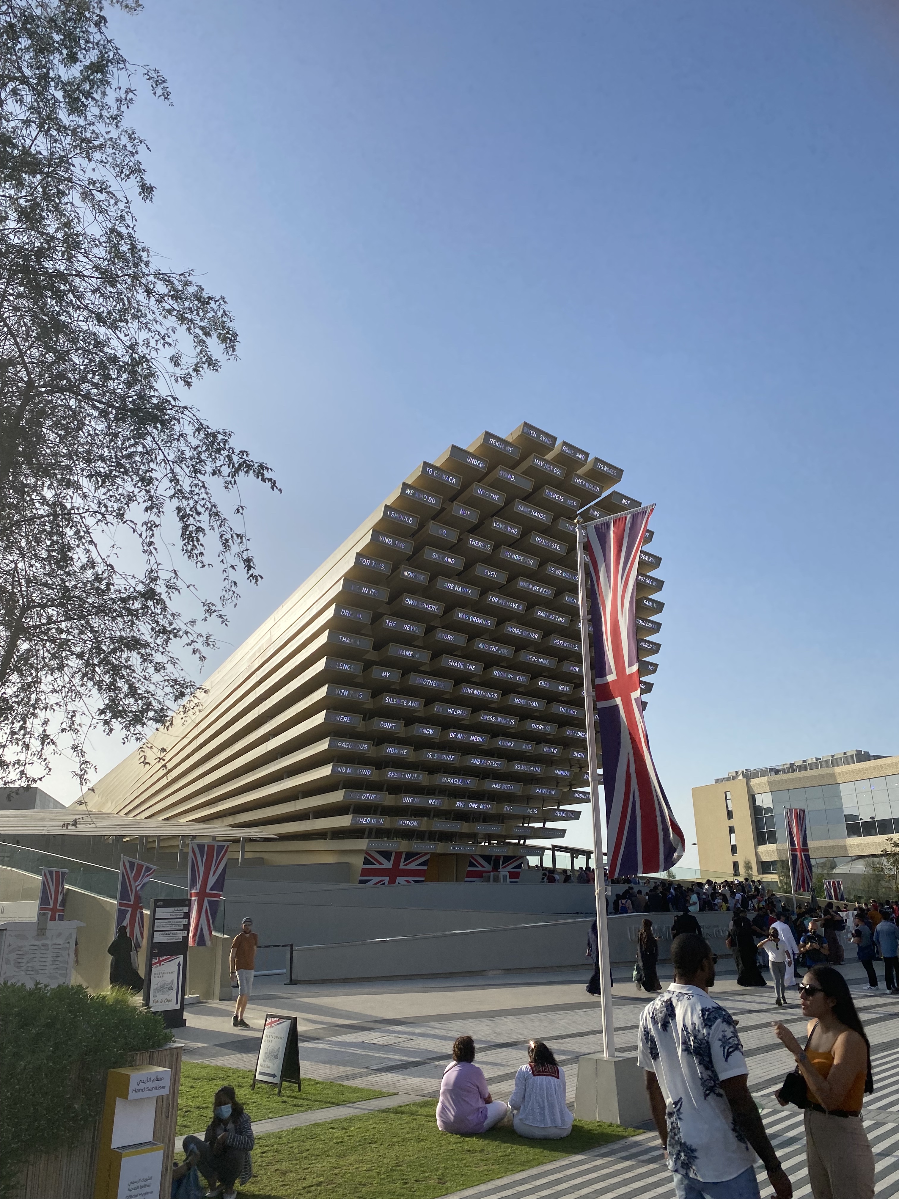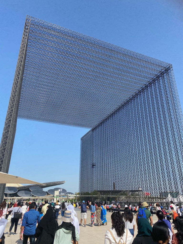 Du peu que nous avons vu, la France était sans conteste un des plus interessants avec tout son savoir-faire mis en avant. L’Arabie Saoudite était fou! Les UAE avec son pavillon en forme d’aile de faucon était sublime, l’Angleterre avec son poème en intelligence artificielle étonnant, mais que dire de la Suisse? Le pavillon en extérieur était plein de promesses. Ce grand miroir où l’on se reflète… mais quelle déception à l’intérieur. Nous voilà pris dans le « fog », bruine où l’on ne voit même pas où l’on marche, des montagnes suisses. Ce pavillon avait au moins l’avantage de nous rafraichir… mais c’est ça la Suisse? N’y a t’il pas des innovations à montrer? notre EPFL? Nos trouvailles médicales… Ha! à la sortie y a Sprüngli et son chocolat… alors tout va bien!