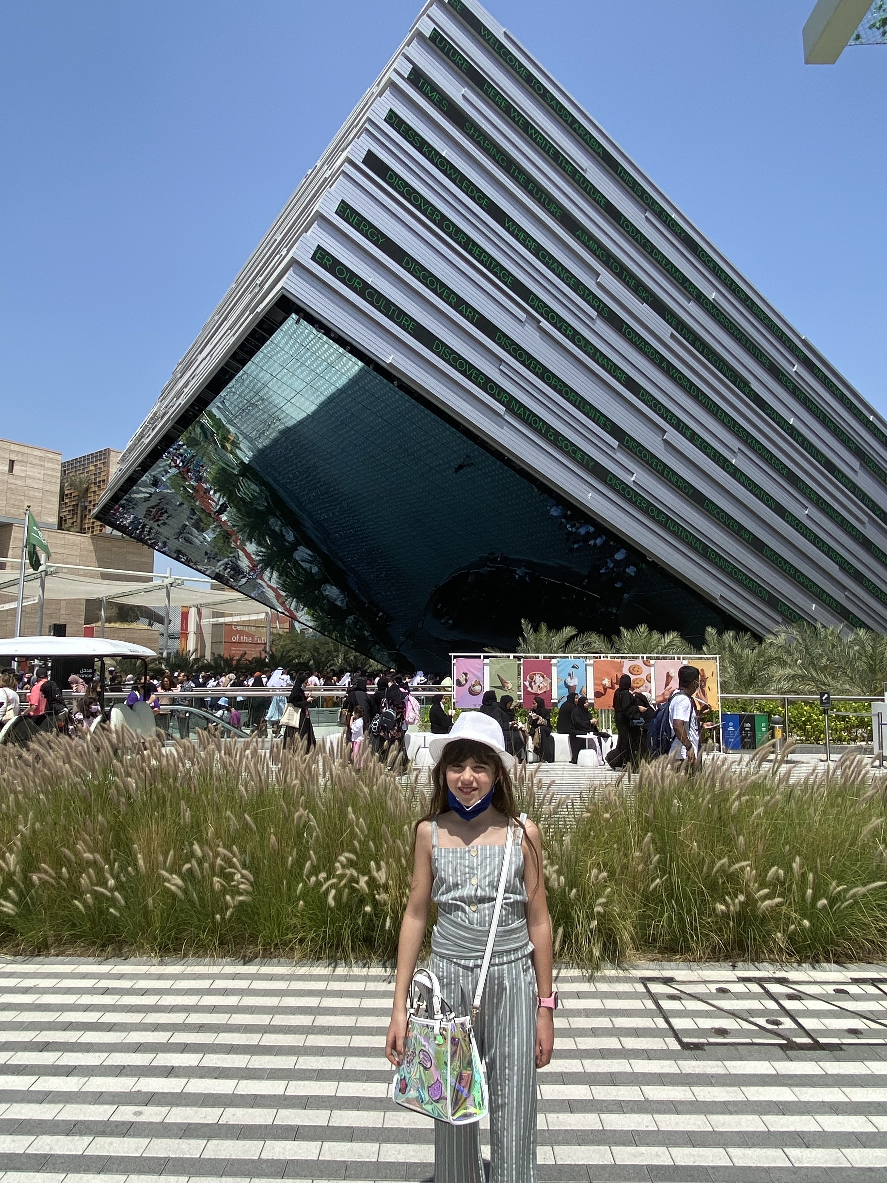 Le site de l’expo est situé tout au sud de Dubaï et mesure 400 hectares, soit plus de 600 terrains de foot. Il y a 192 pays représentés par un pavillon à visiter. Les 3 thèmes principaux sont: La durabilité, la mobilité et les opportunités.